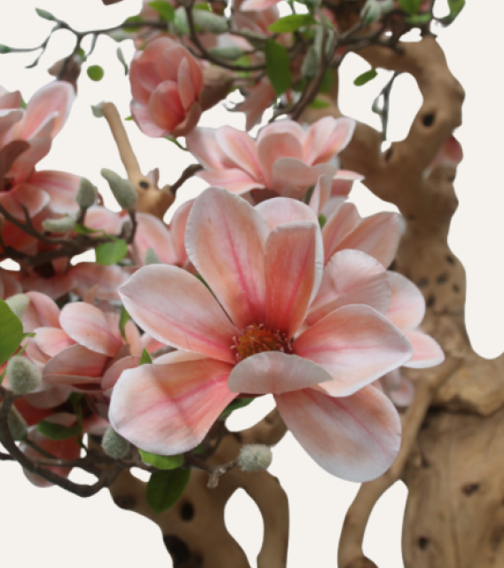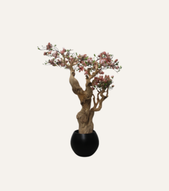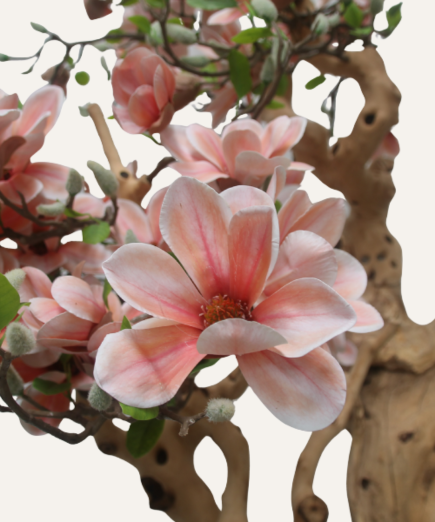 El Magnolio Córcega de 160 cm es una pieza artesanal que combina elegancia y sofisticación en cada detalle. Su tronco trabajado a mano aporta autenticidad y solidez, mientras que su copa frondosa y sus flores blancas transmiten serenidad y frescura natural. Cada rama y pétalo han sido cuidadosamente diseñados para equilibrar arte y naturaleza, convirtiendo esta pieza en un elemento decorativo único que aporta calidez y distinción a cualquier espacio. Perfecto para hoteles, oficinas, restaurantes o interiores que buscan un toque elegante y acogedor, el Magnolio Córcega transforma cualquier ambiente con su presencia armoniosa y natural.