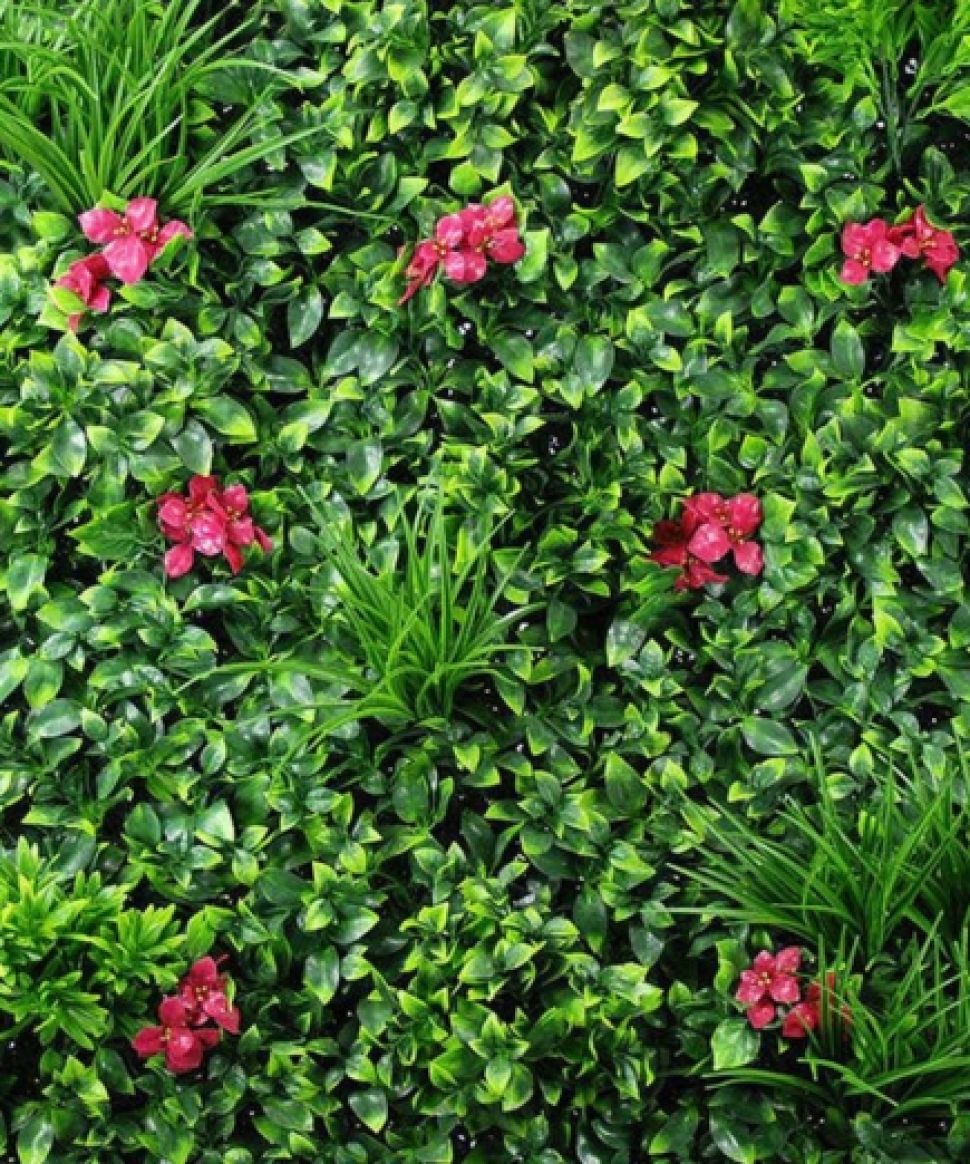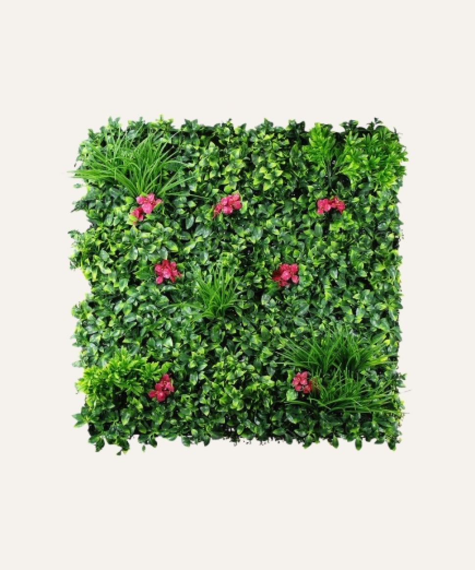 El jardín vertical artificial de 100×100 cm es una solución decorativa premium diseñada para proyectos profesionales que buscan impacto visual inmediato sin costes de mantenimiento. Su composición de follaje sintético de alta densidad ofrece un aspecto natural y estable, adecuado para instalaciones en interior y exterior.