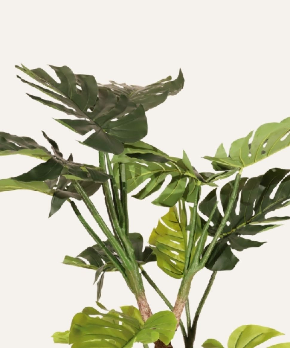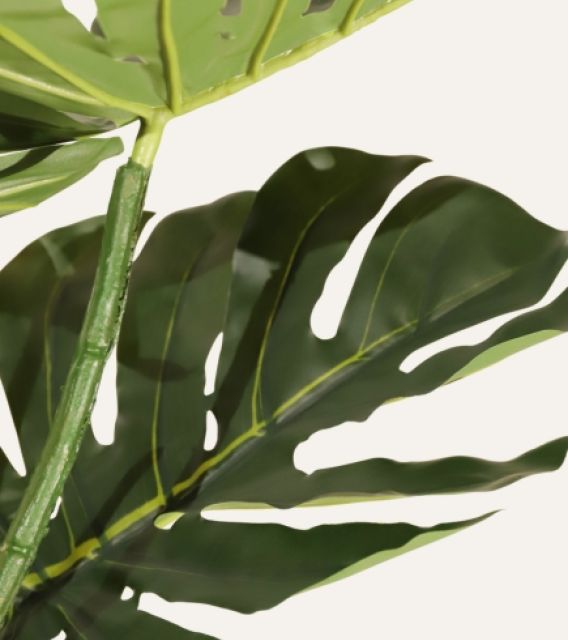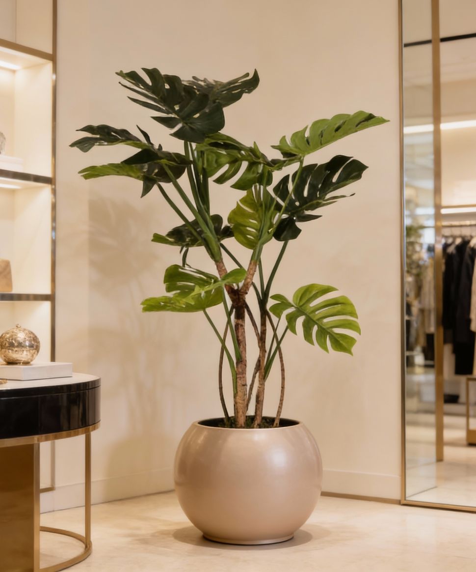 La Monstera artificial de 120 cm, diseñada para uso exclusivo en interiores, presenta un follaje amplio y característico de acabado realista que aporta presencia, estilo y un toque tropical a cualquier espacio profesional. Su estructura resistente y libre de mantenimiento garantiza durabilidad y uniformidad estética, convirtiéndola en una solución ideal para hoteles, oficinas, comercios y proyectos contract que buscan integrar vegetación decorativa de alta calidad sin los costes ni cuidados asociados a plantas naturales.