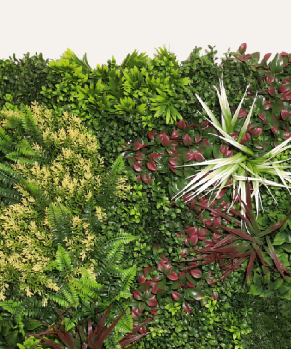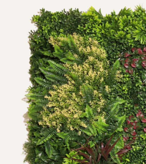 Jardín vertical artificial: verde y moderno, sin riego ni mantenimiento.