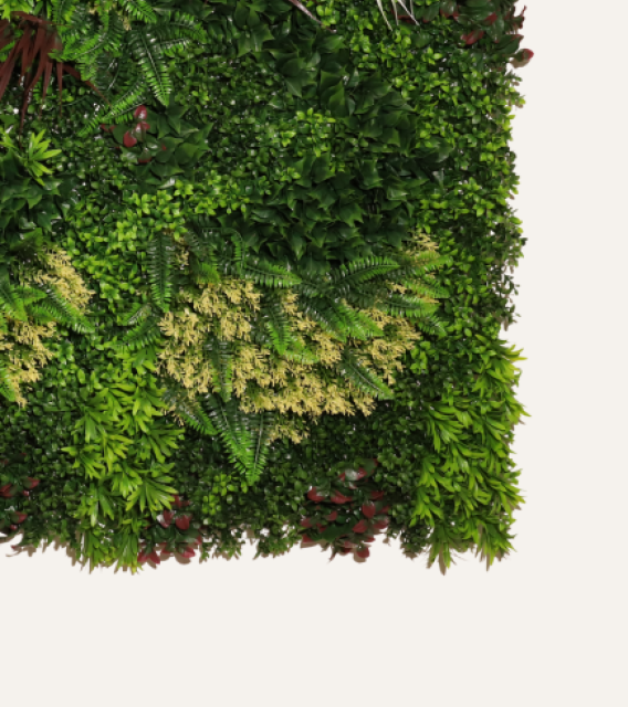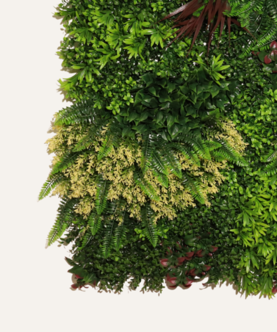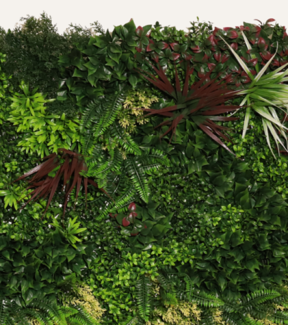 Jardín vertical artificial: verde y moderno, sin riego ni mantenimiento.