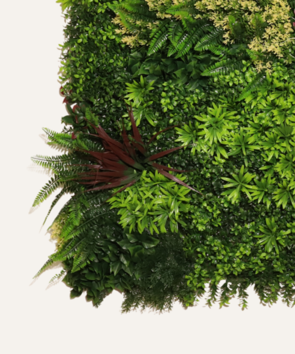 Jardín vertical artificial: verde y moderno, sin riego ni mantenimiento.