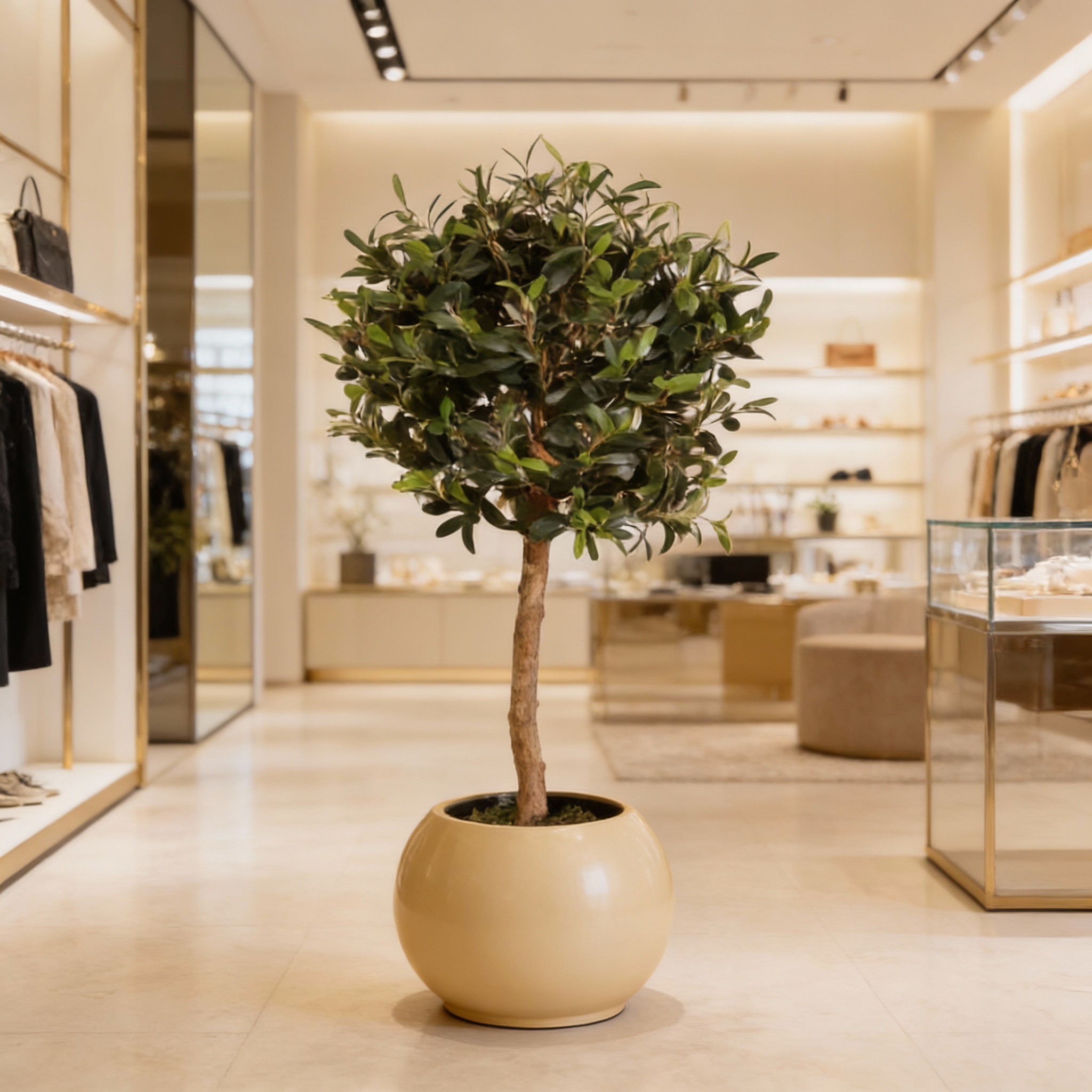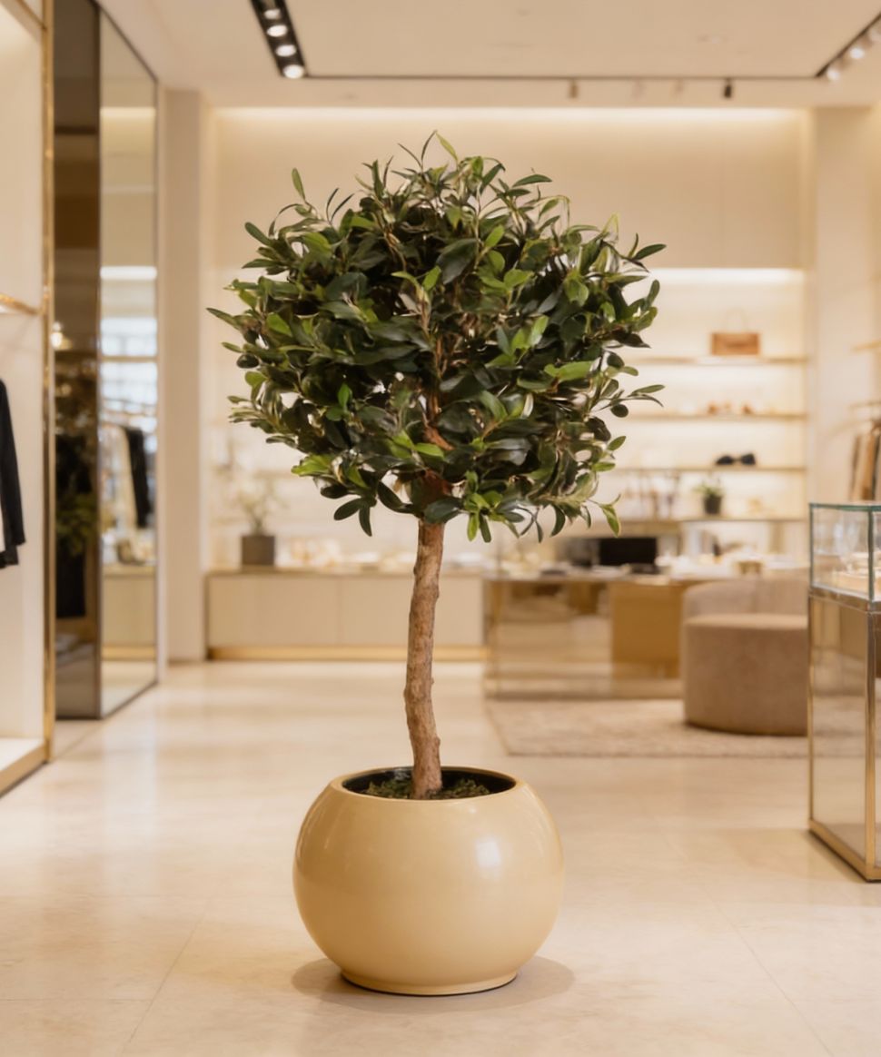 El Olivo artificial de 90 cm, diseñado para uso exclusivo en interiores, incorpora un tronco natural que aporta autenticidad y carácter, acompañado de un follaje realista que aporta frescura y elegancia a cualquier espacio profesional. Su estructura resistente y libre de mantenimiento lo convierte en una solución decorativa duradera y uniforme, ideal para hoteles, oficinas, comercios y proyectos contract que buscan integrar vegetación estética de alta calidad sin los costes ni cuidados asociados a plantas naturales.
