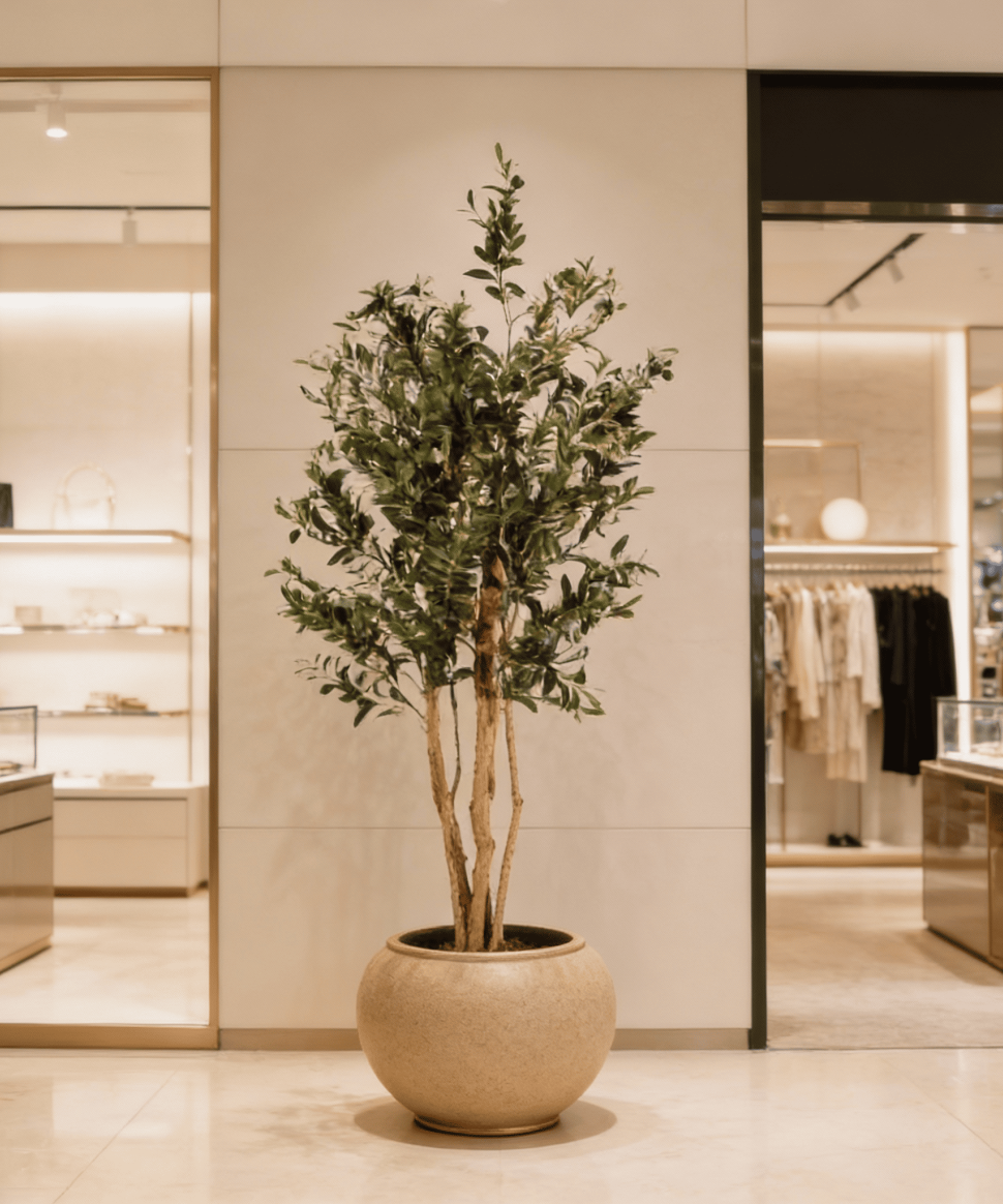 El Olivo artificial de 180 cm, diseñado para uso exclusivo en interiores, combina un tronco natural con un follaje de acabado realista, aportando autenticidad, sofisticación y presencia a cualquier espacio profesional. Su estructura resistente y libre de mantenimiento garantiza durabilidad y uniformidad estética, convirtiéndolo en una solución óptima para hoteles, oficinas, comercios y proyectos contract que buscan vegetación decorativa de alta calidad sin los costes ni cuidados asociados a plantas naturales.