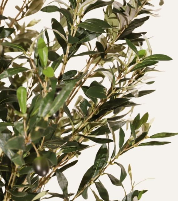 Olivo artificial de 180 cm para interior, con tronco natural y acabado realista, ideal para proyectos corporativos y contract.