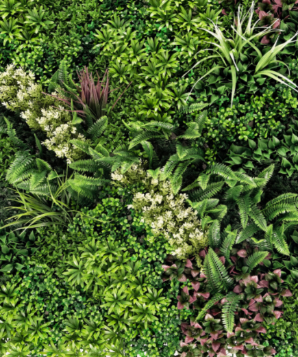 Jardín vertical artificial: verde y moderno, sin riego ni mantenimiento.