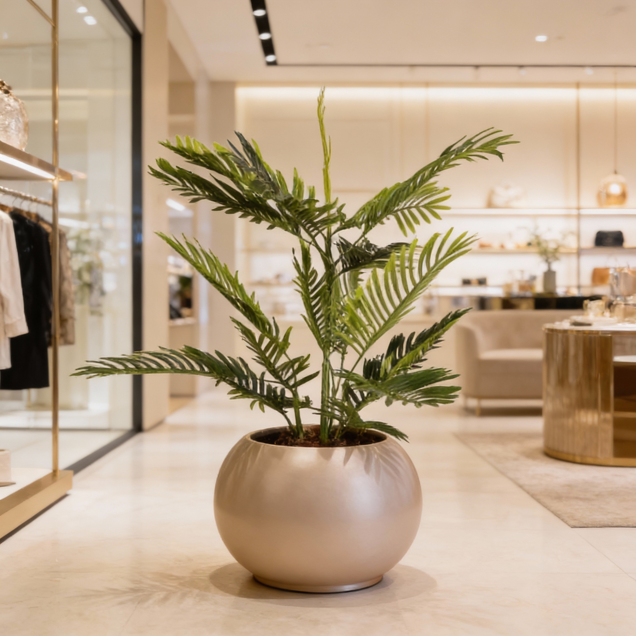 La Palmera artificial de 85 cm, diseñada para uso exclusivo en interiores, presenta un follaje detallado y realista que aporta un toque tropical y fresco a cualquier espacio profesional. Su estructura resistente y libre de mantenimiento garantiza durabilidad y uniformidad estética, convirtiéndola en una solución decorativa ideal para hoteles, oficinas, comercios y proyectos contract que buscan integrar vegetación elegante de alta calidad sin los costes ni cuidados asociados a plantas naturales.