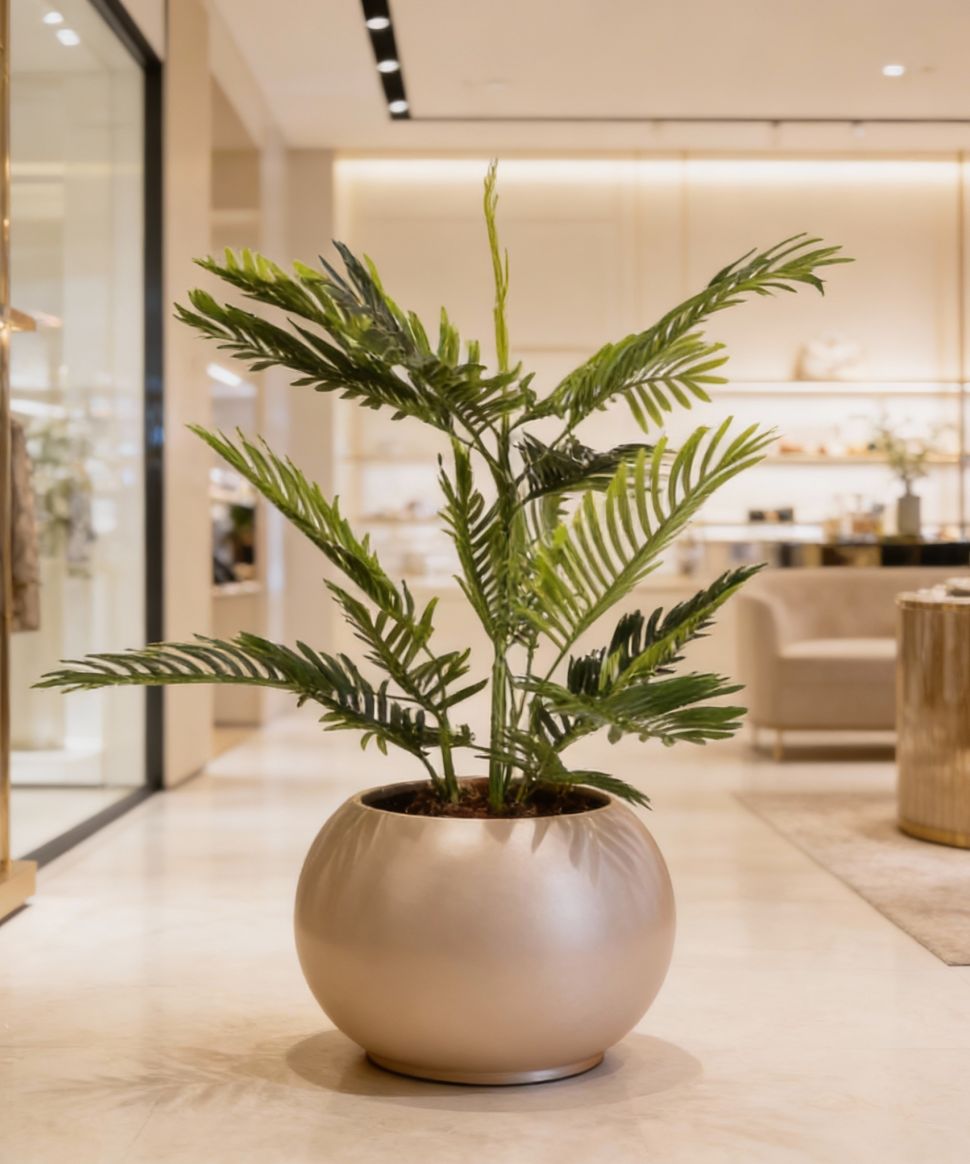 La Palmera artificial de 85 cm, diseñada para uso exclusivo en interiores, presenta un follaje detallado y realista que aporta un toque tropical y fresco a cualquier espacio profesional. Su estructura resistente y libre de mantenimiento garantiza durabilidad y uniformidad estética, convirtiéndola en una solución decorativa ideal para hoteles, oficinas, comercios y proyectos contract que buscan integrar vegetación elegante de alta calidad sin los costes ni cuidados asociados a plantas naturales.