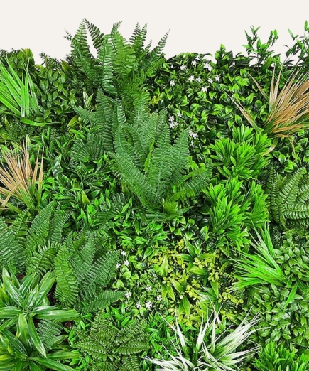 El jardín vertical artificial de 100×100 cm es una solución decorativa premium diseñada para proyectos profesionales que buscan impacto visual inmediato sin costes de mantenimiento. Su composición de follaje sintético de alta densidad ofrece un aspecto natural y estable, adecuado para instalaciones en interior y exterior.