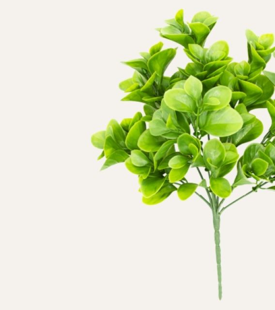 Su estructura resistente mantiene la forma y el volumen de la planta, permitiendo su uso tanto en interiores como en exteriores. Libre de mantenimiento, la peperonia artificial es una solución práctica y estética para oficinas, hoteles, comercios y proyectos contract que buscan vegetación decorativa de alta calidad sin los cuidados asociados a plantas naturales.