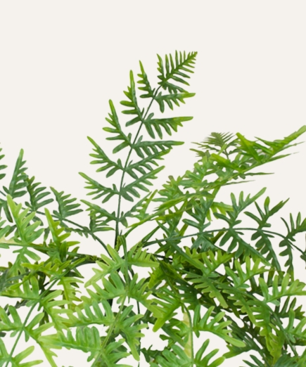Su estructura resistente garantiza estabilidad y durabilidad, permitiendo su uso en interiores y exteriores protegidos, como oficinas, hoteles, comercios, estanterías o jardines verticales. Libre de mantenimiento, la planta de helecho grande artificial es una solución ideal para proyectos contract y entornos que buscan vegetación decorativa de alta calidad sin los cuidados asociados a plantas naturales.