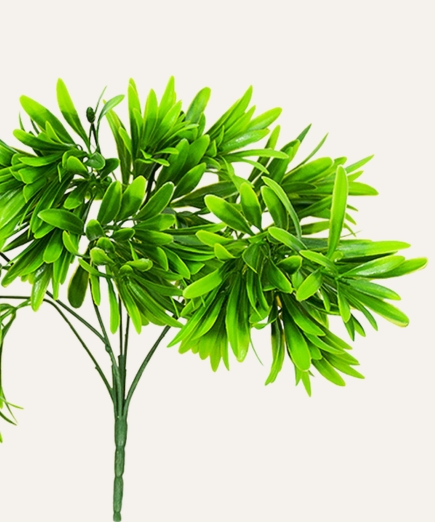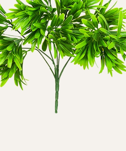 El podocarpo artificial es una planta decorativa de estilo sobrio y elegante, diseñada para aportar estructura, volumen y un aspecto natural a espacios profesionales. Su follaje denso y alargado, de acabado realista, reproduce fielmente la apariencia del podocarpo natural, ofreciendo una presencia equilibrada y versátil que se integra fácilmente en distintos entornos.
