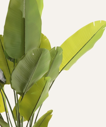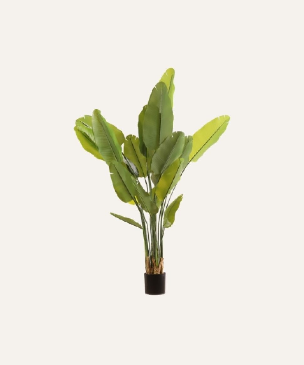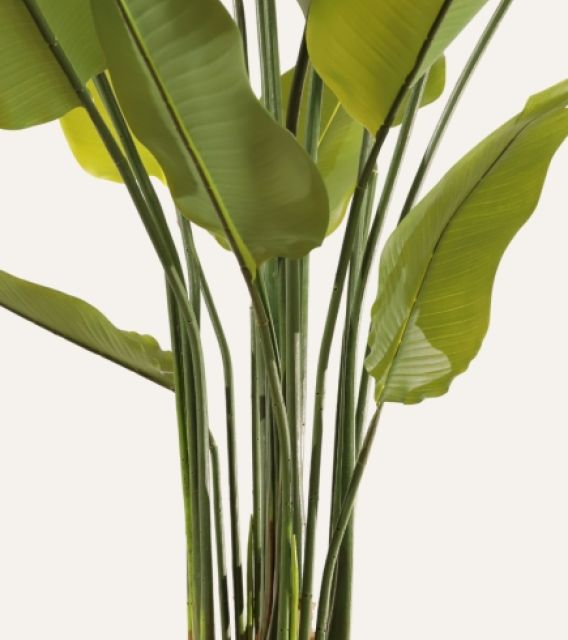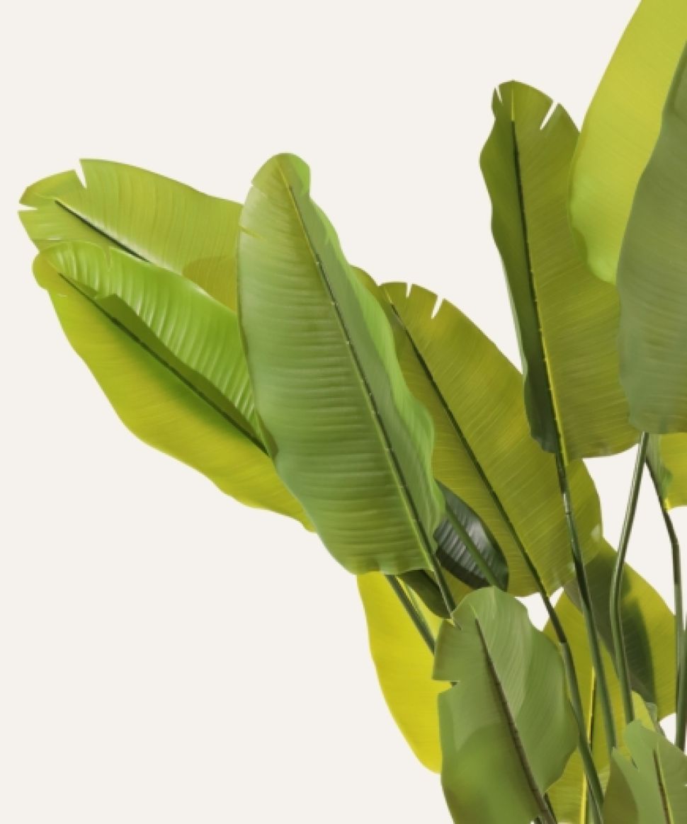 La Ravenala artificial de 180 cm, reina absoluta de los interiores, despliega un follaje amplio y realista que llena cualquier espacio profesional de estilo tropical y elegancia. Con su estructura robusta y libre de mantenimiento, garantiza presencia duradera, estabilidad y uniformidad estética, convirtiéndose en la aliada perfecta para hoteles, oficinas, comercios y proyectos contract que buscan vegetación de alta calidad sin complicaciones.