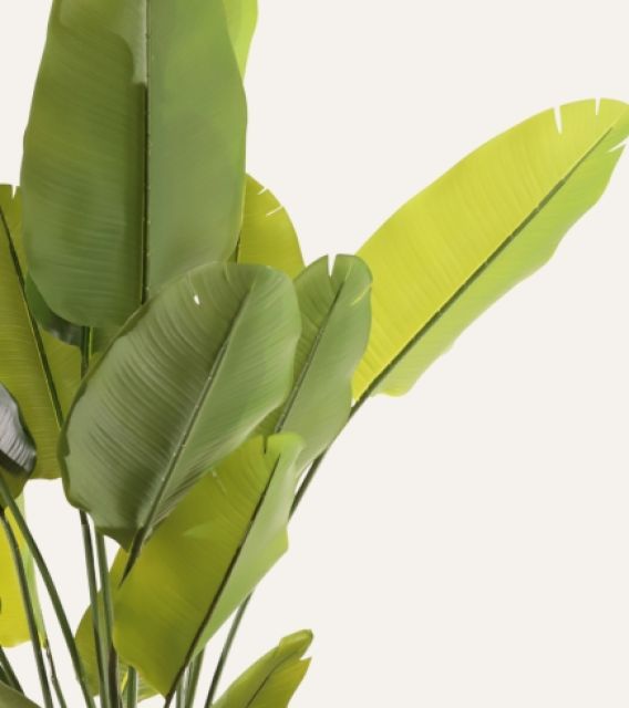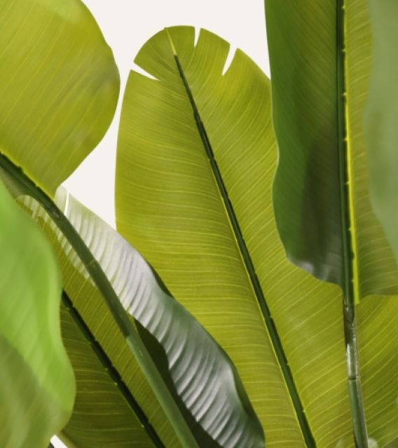 La Ravenala artificial de 180 cm, reina absoluta de los interiores, despliega un follaje amplio y realista que llena cualquier espacio profesional de estilo tropical y elegancia. Con su estructura robusta y libre de mantenimiento, garantiza presencia duradera, estabilidad y uniformidad estética, convirtiéndose en la aliada perfecta para hoteles, oficinas, comercios y proyectos contract que buscan vegetación de alta calidad sin complicaciones.