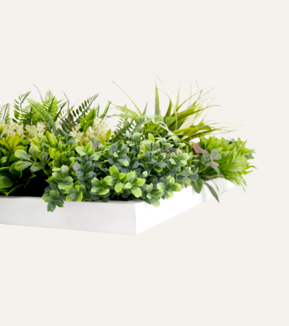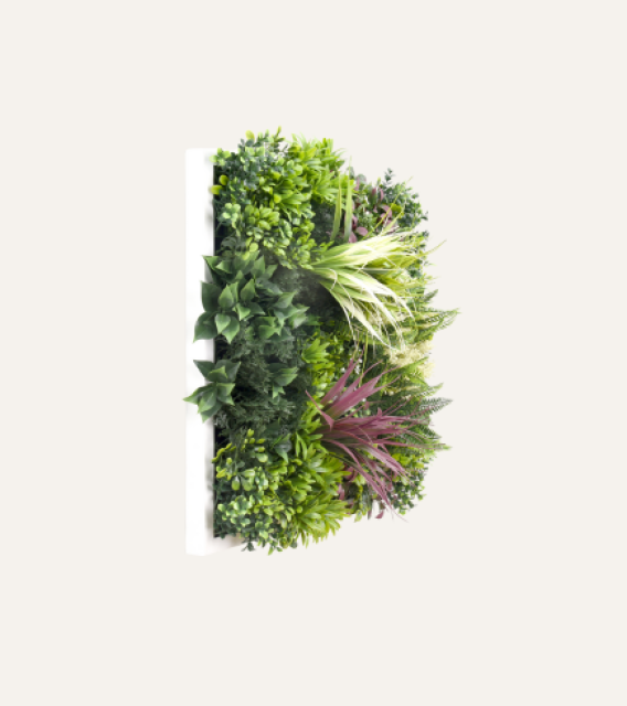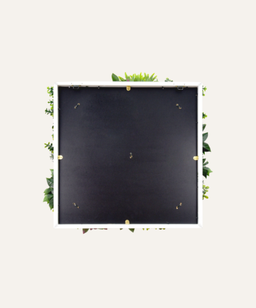 Evita químicos fuertes: No uses productos de limpieza agresivos, ya que pueden dañar el color y el material del cuadro vegetal.
