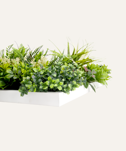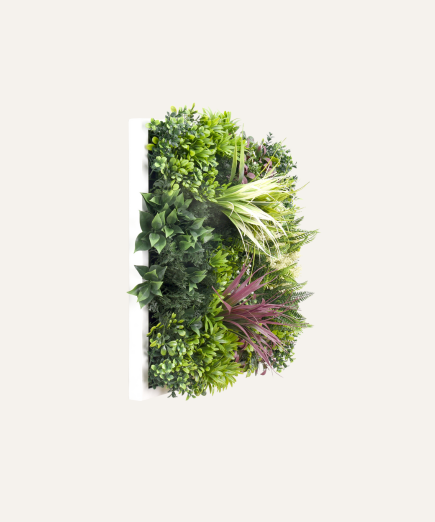 Evita químicos fuertes: No uses productos de limpieza agresivos, ya que pueden dañar el color y el material del cuadro vegetal.