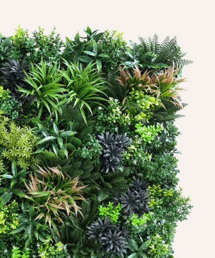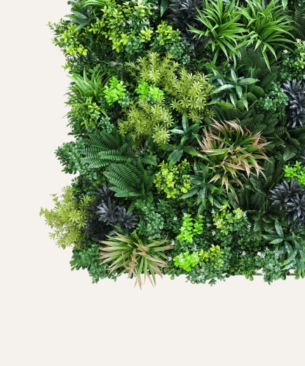 El jardín vertical artificial de 100×100 cm es una solución decorativa premium diseñada para proyectos profesionales que buscan impacto visual inmediato sin costes de mantenimiento. Su composición de follaje sintético de alta densidad ofrece un aspecto natural y estable, adecuado para instalaciones en interior y exterior.