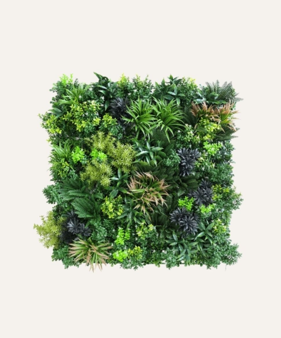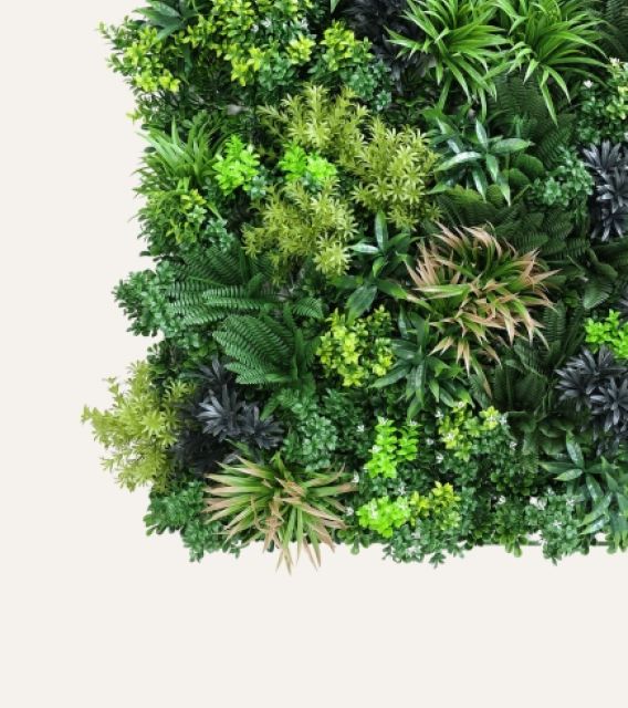 El jardín vertical artificial de 100×100 cm es una solución decorativa premium diseñada para proyectos profesionales que buscan impacto visual inmediato sin costes de mantenimiento. Su composición de follaje sintético de alta densidad ofrece un aspecto natural y estable, adecuado para instalaciones en interior y exterior.