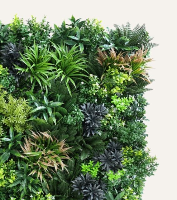 Jardín vertical artificial: verde y moderno, sin riego ni mantenimiento.