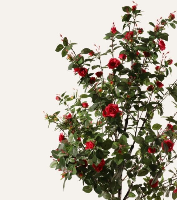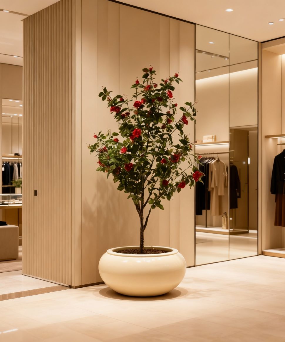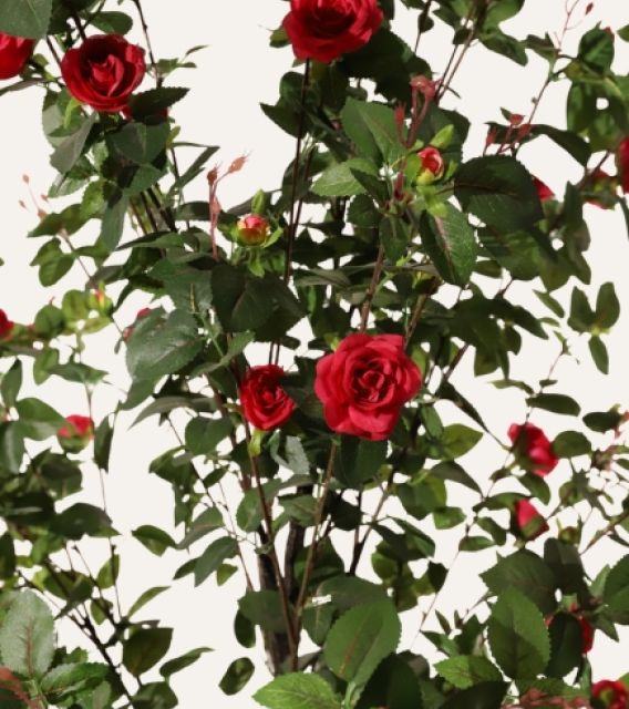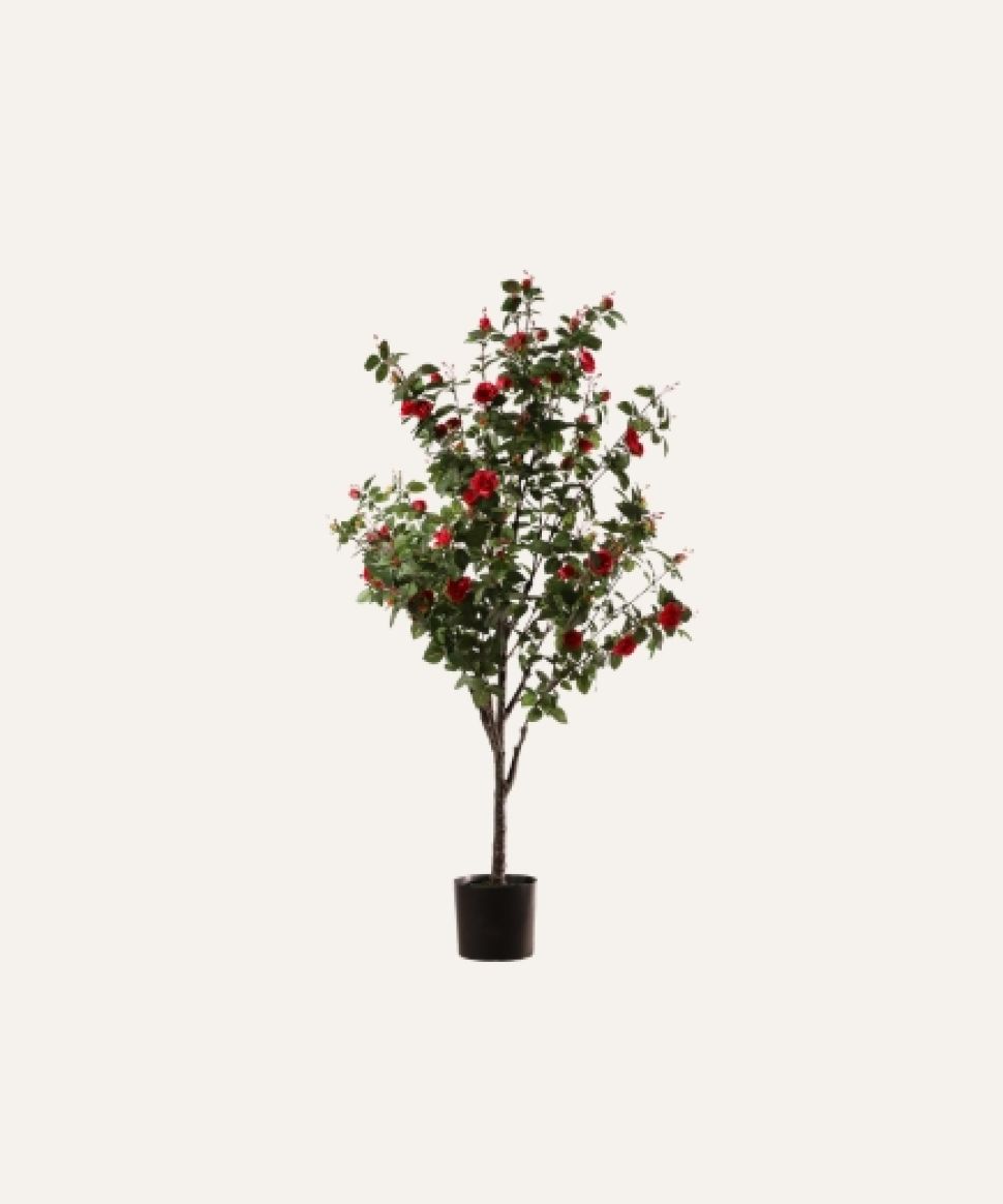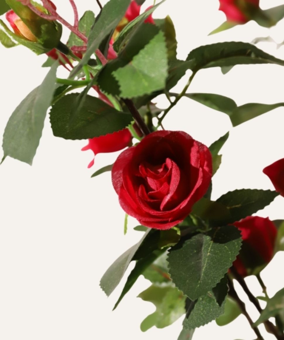 El Rosal fucsia artificial de 160 cm, diseñado para uso exclusivo en interiores, ofrece flores vibrantes y follaje de acabado realista que aportan un toque de color intenso y sofisticación a cualquier espacio profesional. Su estructura resistente y libre de mantenimiento lo convierte en una solución decorativa ideal para hoteles, oficinas, comercios y proyectos contract que buscan integrar vegetación estética, duradera y uniforme sin generar costes adicionales de cuidado.
