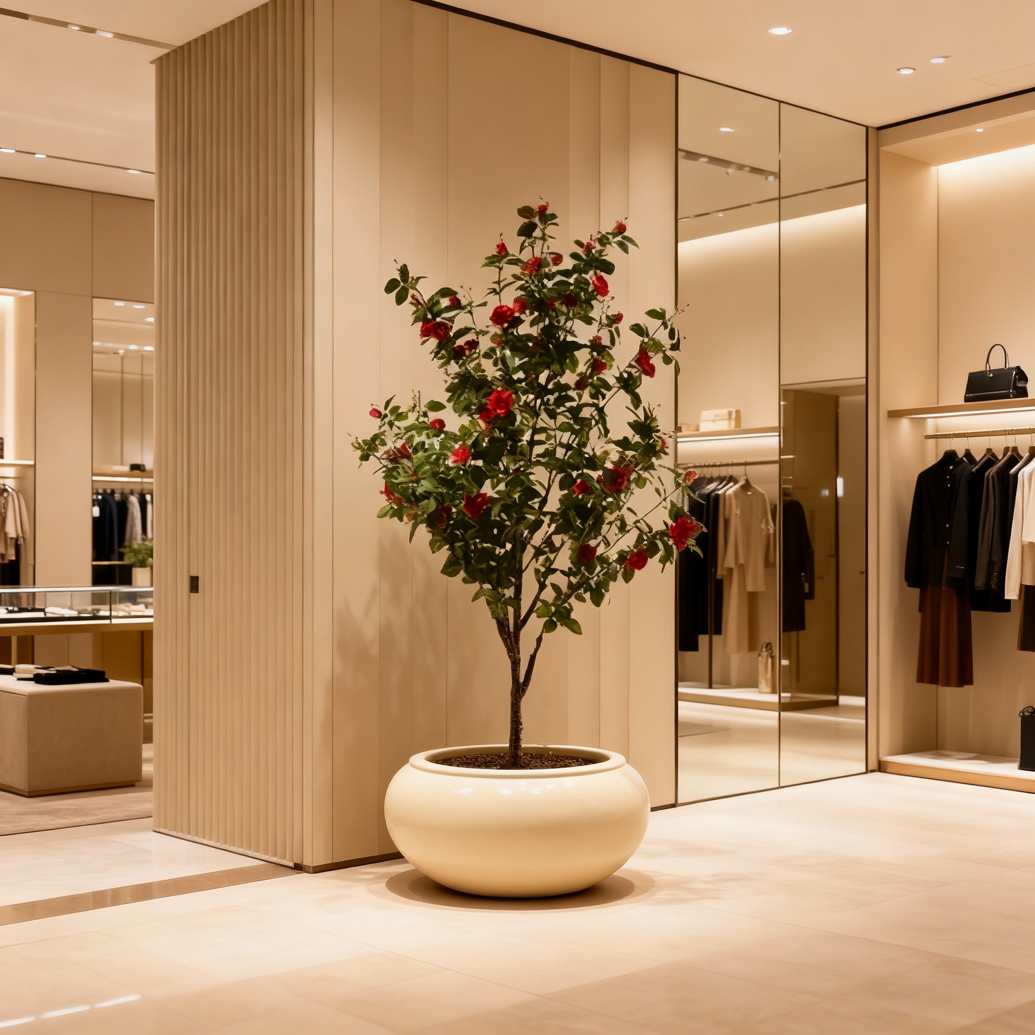 El Rosal fucsia artificial de 160 cm, diseñado para uso exclusivo en interiores, ofrece flores vibrantes y follaje de acabado realista que aportan un toque de color intenso y sofisticación a cualquier espacio profesional. Su estructura resistente y libre de mantenimiento lo convierte en una solución decorativa ideal para hoteles, oficinas, comercios y proyectos contract que buscan integrar vegetación estética, duradera y uniforme sin generar costes adicionales de cuidado.