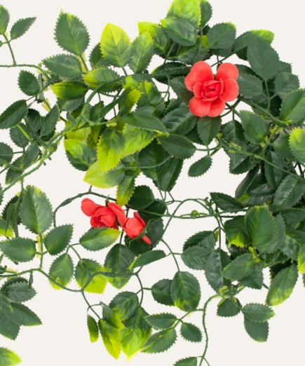 El rosal rojo artificial es un elemento decorativo de gran impacto visual, diseñado para aportar elegancia, intensidad cromática y un carácter clásico a espacios profesionales. Sus flores rojas de acabado realista, combinadas con un follaje verde cuidadosamente trabajado, recrean fielmente la estética del rosal natural, aportando sofisticación y presencia a cualquier ambiente.
