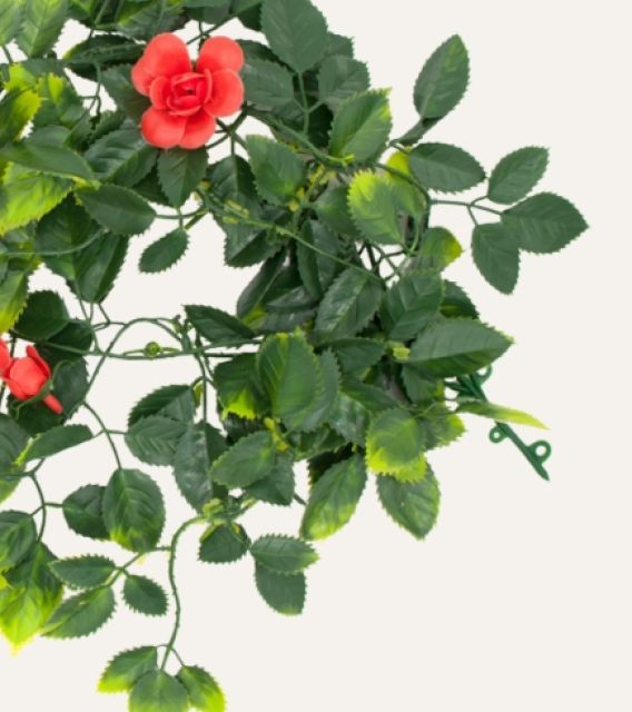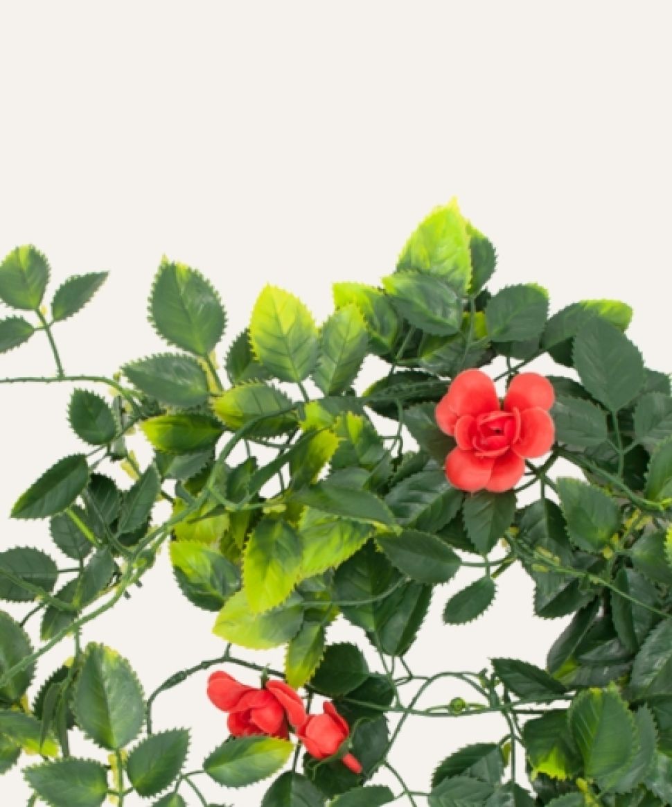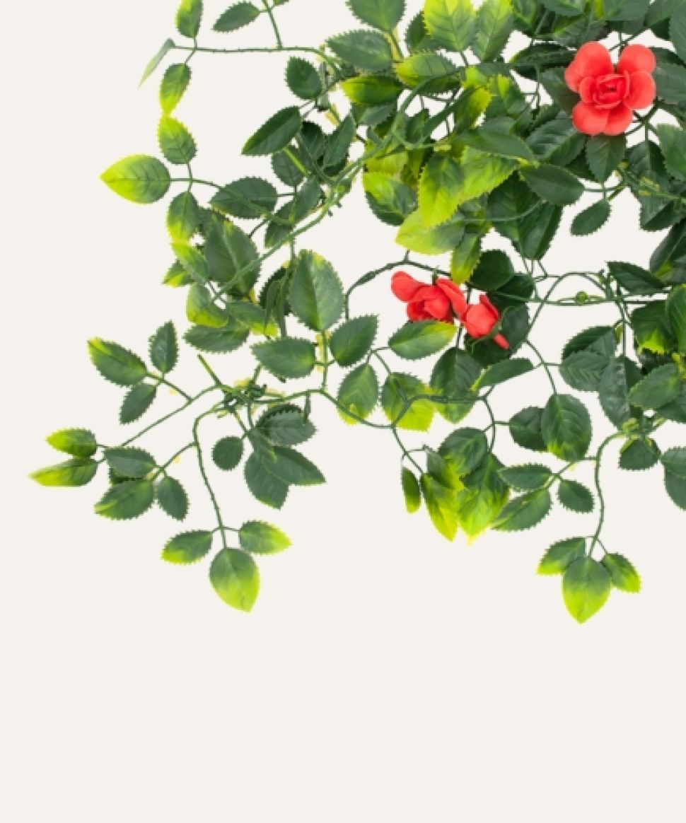 El rosal rojo artificial es un elemento decorativo de gran impacto visual, diseñado para aportar elegancia, intensidad cromática y un carácter clásico a espacios profesionales. Sus flores rojas de acabado realista, combinadas con un follaje verde cuidadosamente trabajado, recrean fielmente la estética del rosal natural, aportando sofisticación y presencia a cualquier ambiente.