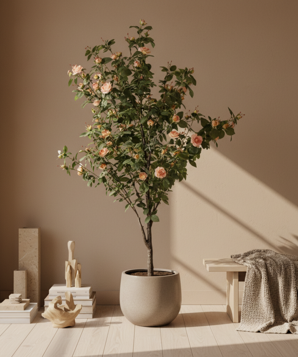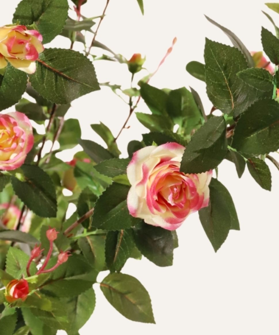 El Rosal rosa artificial de 160 cm, diseñado para uso exclusivo en interiores, combina un follaje detallado con flores de aspecto natural que aportan color y elegancia a cualquier espacio profesional. Su construcción resistente y libre de mantenimiento lo convierte en una solución decorativa ideal para hoteles, oficinas, comercios y proyectos contract que buscan integrar vegetación estética, duradera y uniforme sin generar costes adicionales de cuidado.