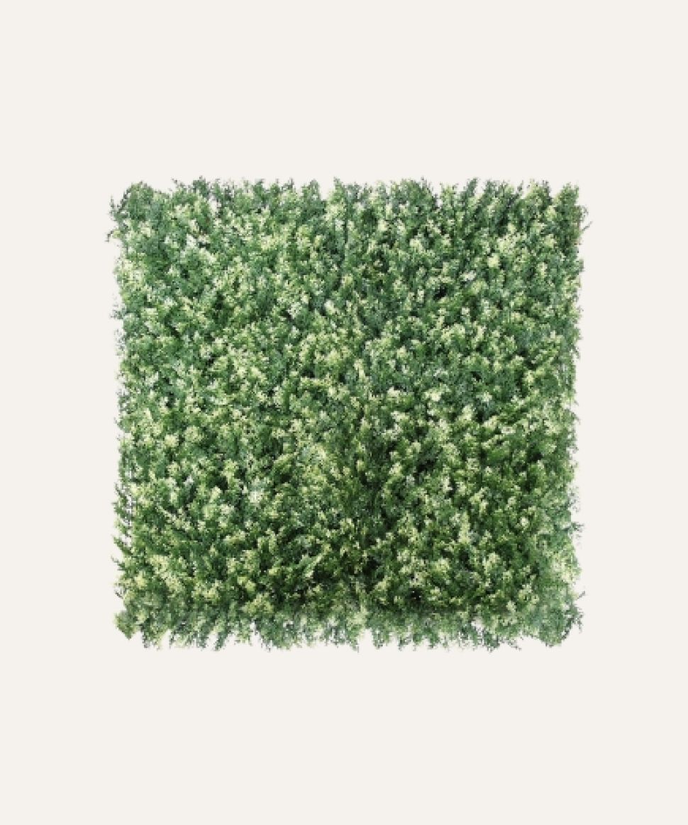 El jardín vertical artificial de 100×100 cm es una solución decorativa premium diseñada para proyectos profesionales que buscan impacto visual inmediato sin costes de mantenimiento. Su composición de follaje sintético de alta densidad ofrece un aspecto natural y estable, adecuado para instalaciones en interior y exterior.