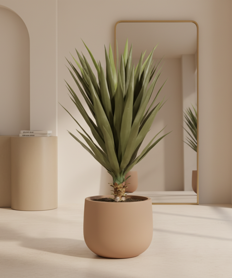 La Yuca artificial de 80 cm, diseñada para uso exclusivo en interiores, presenta un follaje estilizado y realista que aporta verticalidad, frescura y un toque contemporáneo a cualquier espacio profesional. Su estructura resistente y libre de mantenimiento garantiza durabilidad y uniformidad estética, convirtiéndola en una solución ideal para hoteles, oficinas, comercios y proyectos contract que requieren vegetación decorativa de alta calidad sin los costes ni cuidados asociados a plantas naturales.