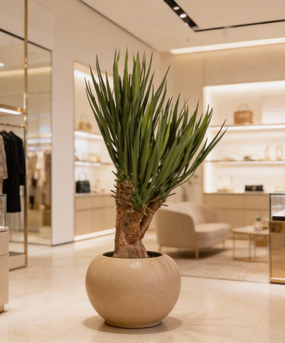 La Yuca Premium artificial de 80 cm, diseñada exclusivamente para interiores, ofrece un acabado superior con hojas de gran definición y una estructura robusta que realza su aspecto natural. Su estética moderna y su presencia compacta la convierten en una opción ideal para proyectos profesionales que buscan elegancia sin mantenimiento. Perfecta para hoteles, oficinas, comercios y espacios contract que requieren soluciones decorativas de alta calidad, consistentes y duraderas.