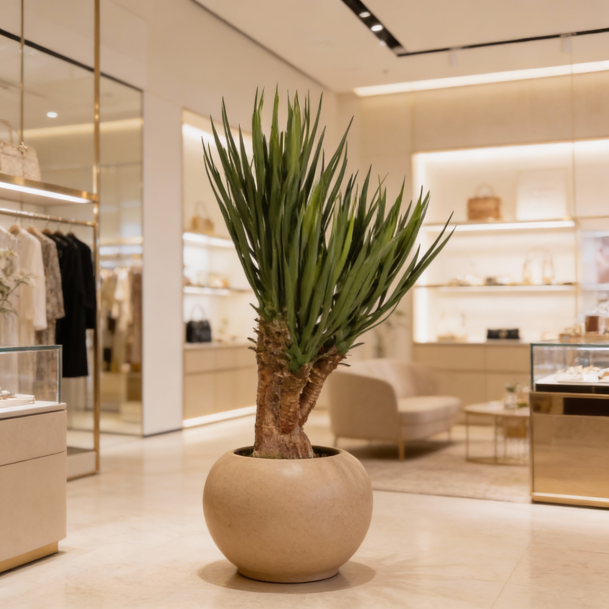 La Yuca Premium artificial de 80 cm, diseñada exclusivamente para interiores, ofrece un acabado superior con hojas de gran definición y una estructura robusta que realza su aspecto natural. Su estética moderna y su presencia compacta la convierten en una opción ideal para proyectos profesionales que buscan elegancia sin mantenimiento. Perfecta para hoteles, oficinas, comercios y espacios contract que requieren soluciones decorativas de alta calidad, consistentes y duraderas.
